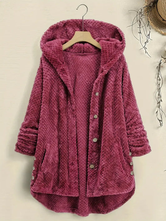 VALENTINA - Abrigo teddy cálido con solapa ancha y botones para mujer