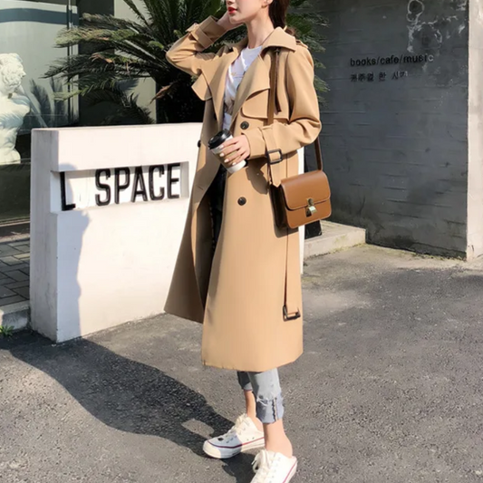 FILOREA - Abrigo clásico largo con doble botonadura y cinturón para mujer