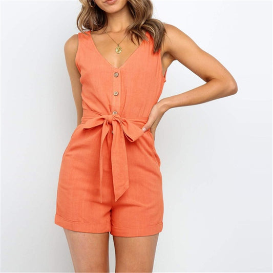 Nuvol - Mono de Tirantes Veraniego Cuello en V y Cinturon con Botones Mujer Verano 2025