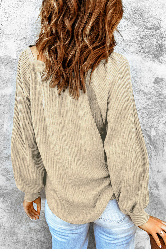 Pihu - Suéter casual holgado manga larga con escote cuadrado para mujer