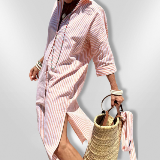 Vestido camisero a rayas con cinturón ajustable – SOPHELLE