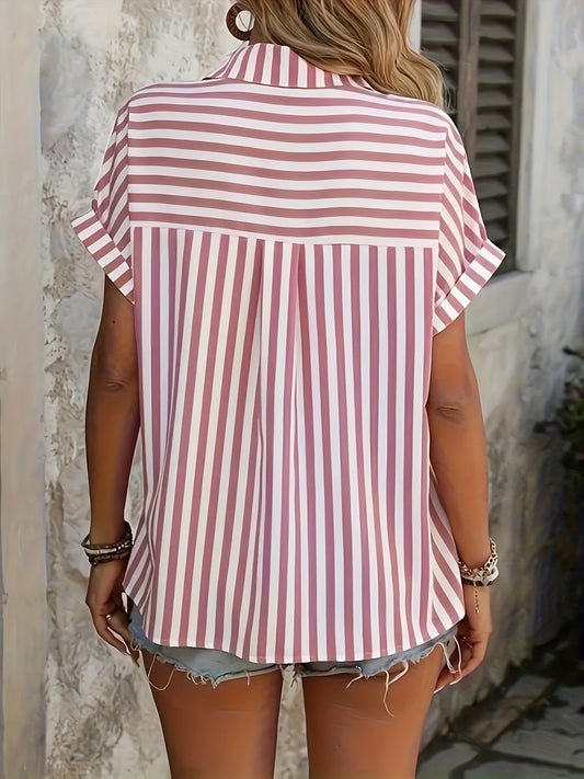 Blusa de mujer con manga corta y detalles de rayas – WENDY