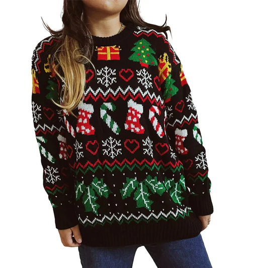 CAMILA - Jersey de invierno con diseño navideño y mangas largas para mujer