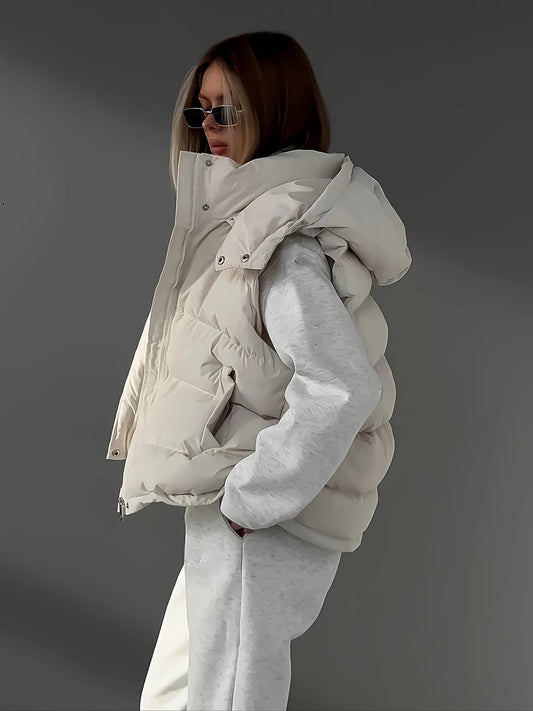 Chaleco largo de mujer con capucha y corte cómodo – JENNIFER