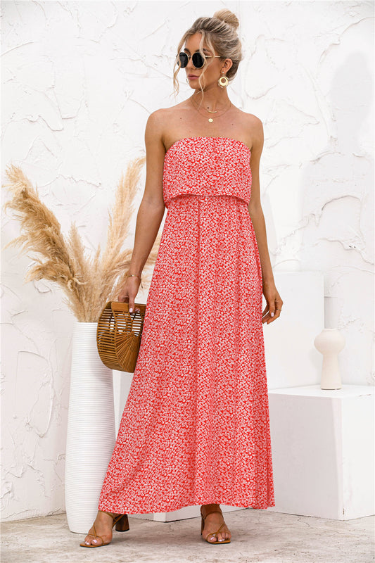 Cora - Vestido Casual Largo de Estampado Floral Palabra de Honor Primavera Verano para mujer