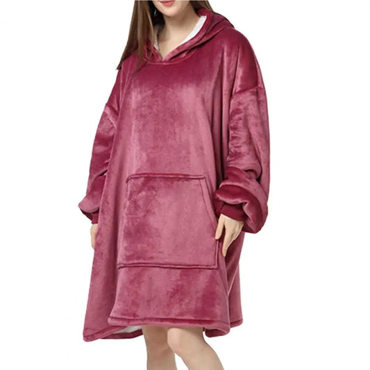 CINNAMON - Vestido tipo hoodie oversize con bolsillo delantero y tejido suave para mujer