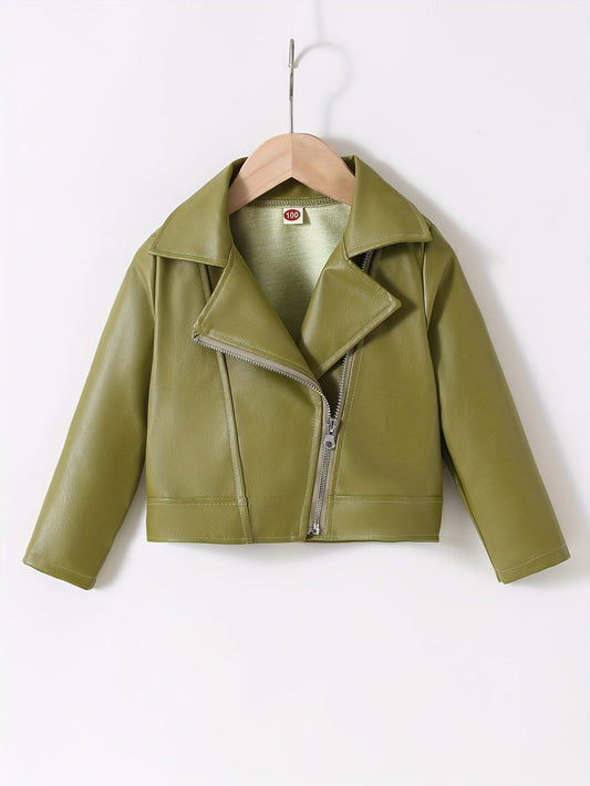 NADIA - Chaqueta de cuero PU con cuello invertido y cremallera diagonal para primavera y otoño