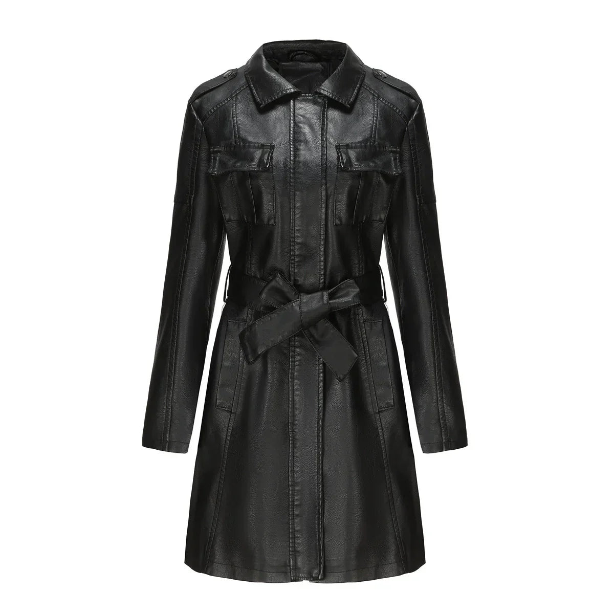El abrigo MIRELIA es la fusión perfecta entre estilo sofisticado y actitud urbana. Su diseño largo y estructurado, confeccionado en polipiel de alta calidad, crea una silueta impactante y segura. Con bolsillos funcionales y un acabado suave y brillante, es una prenda ideal para mujeres que desean destacar sin esfuerzo en los meses más frescos.