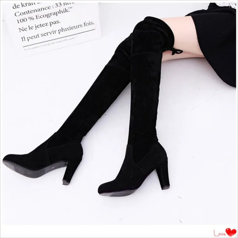 ADÈLE - Botas caña alta con tacón alto y punta redonda para mujer