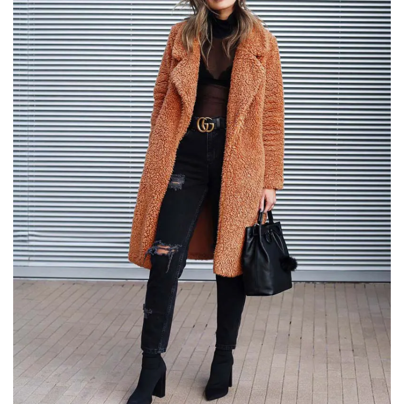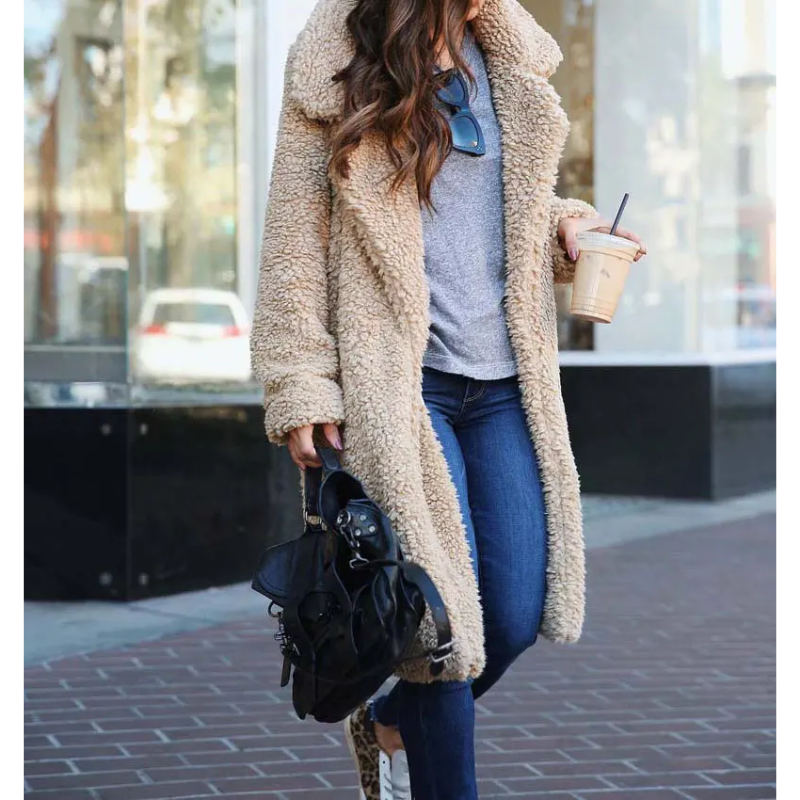 CAMILA - Abrigo largo de teddy para mujer ideal para días fríos