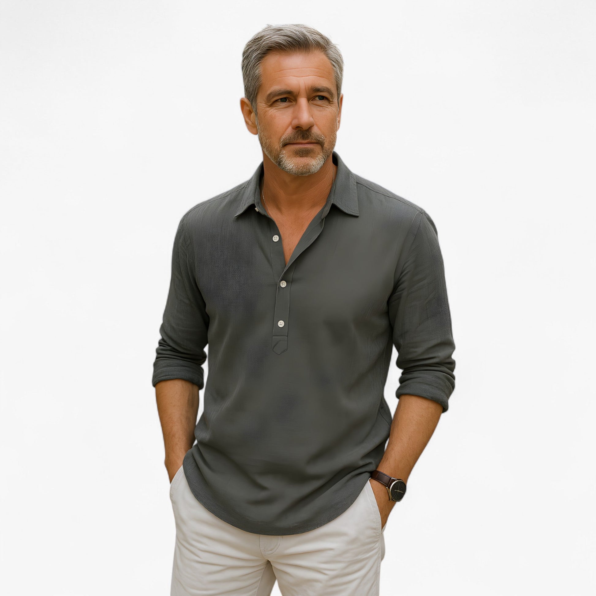 Gracias a su corte amplio y su tejido suave, esta camisa te permite moverte con total libertad, manteniendo siempre un aire relajado y sofisticado.