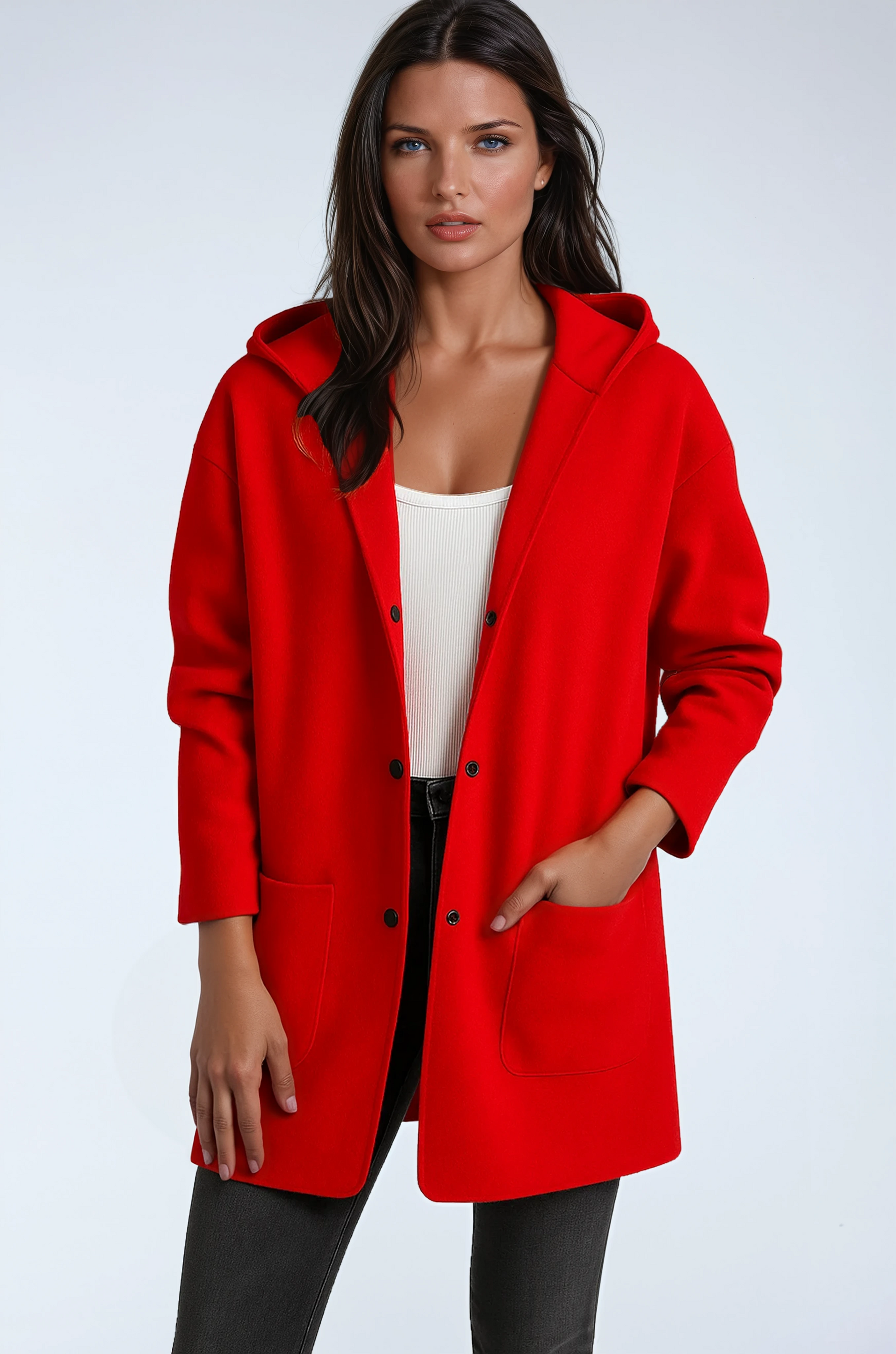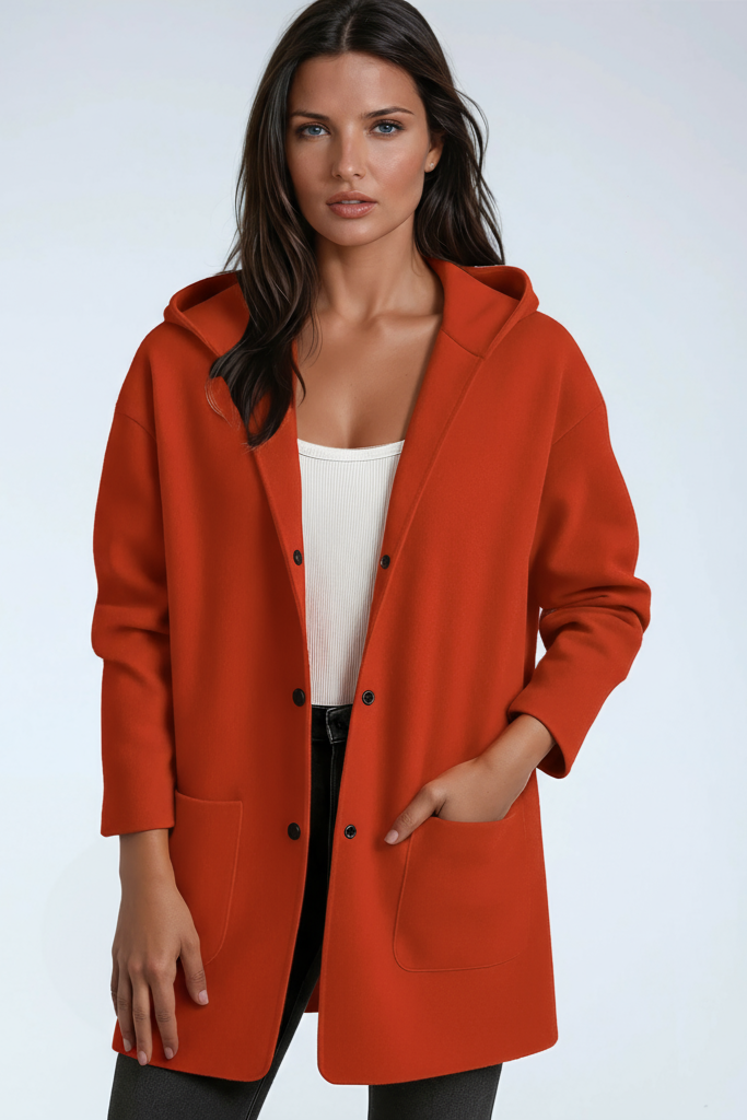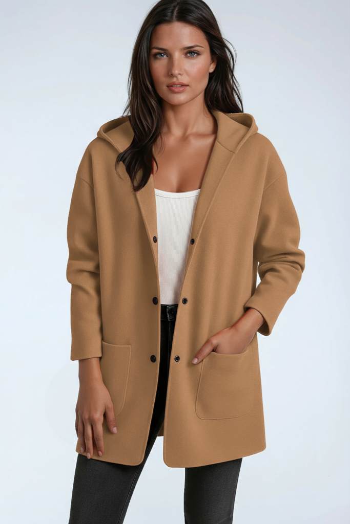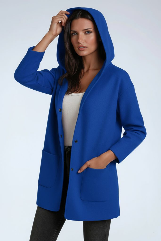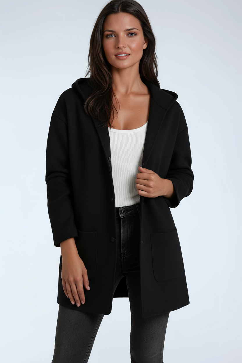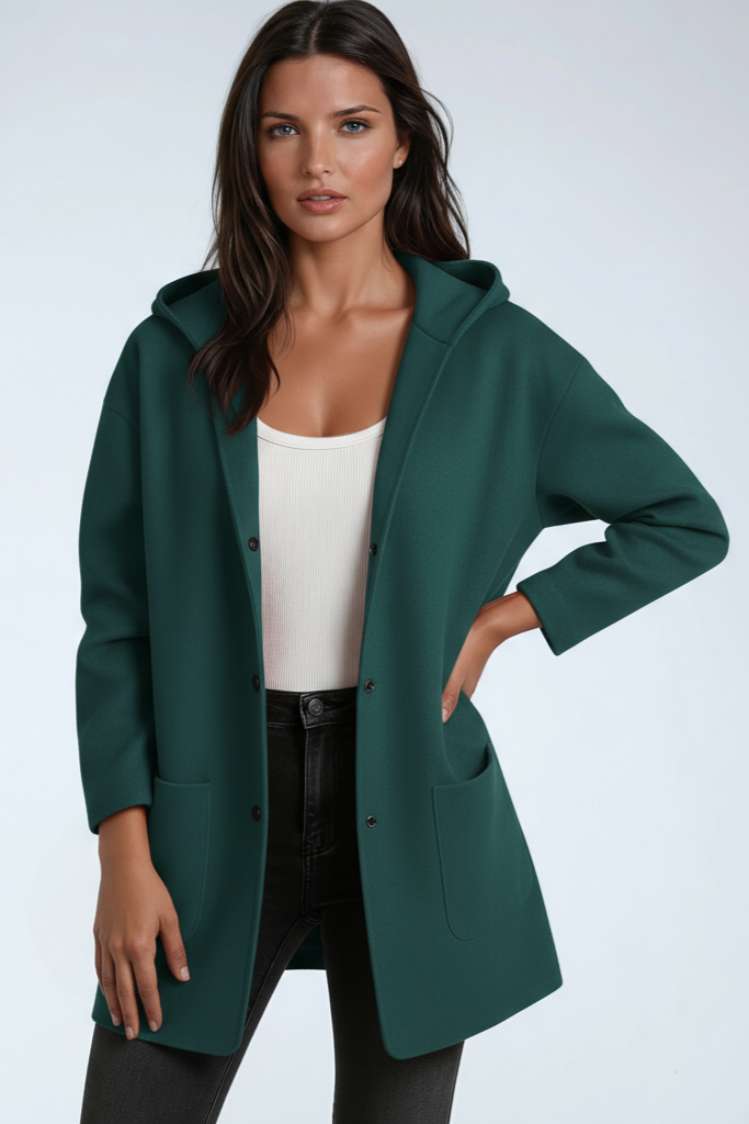 Chaqueta larga de mujer con capucha y cierre de botones a presión – JASMINA