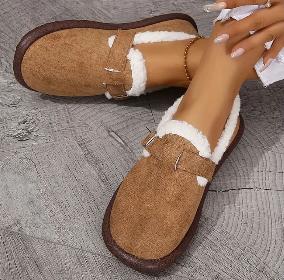 COURTNEY - Mocasines ortopédicos con forro de piel y cierre de hebilla para mujer