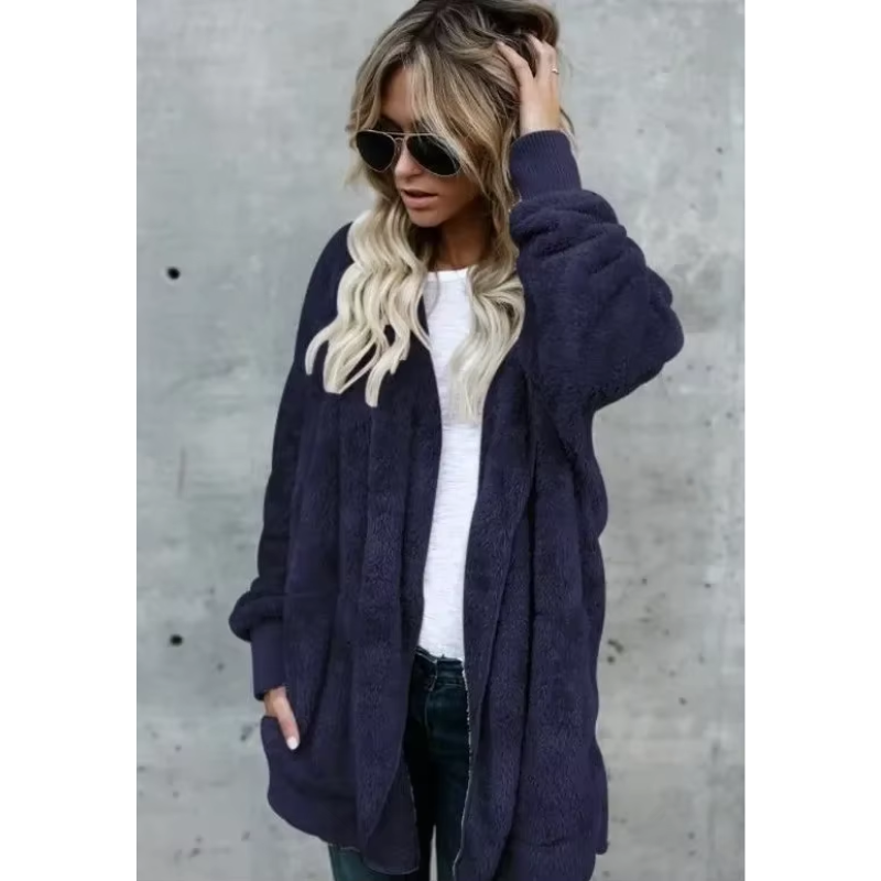 La chaqueta Elisa es perfecta para la mujer que busca una prenda moderna y acogedora. Confeccionada en tejido teddy suave y con un forro cálido, esta chaqueta proporciona la comodidad que necesitas en invierno, mientras que su diseño con solapa le añade un toque elegante. Ideal para combinar con jeans, pantalones o faldas, es una pieza versátil para cualquier aspecto casual o chic.