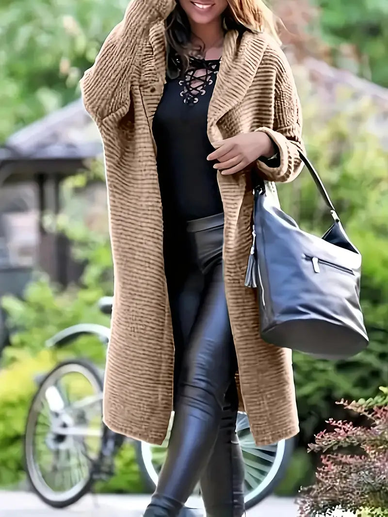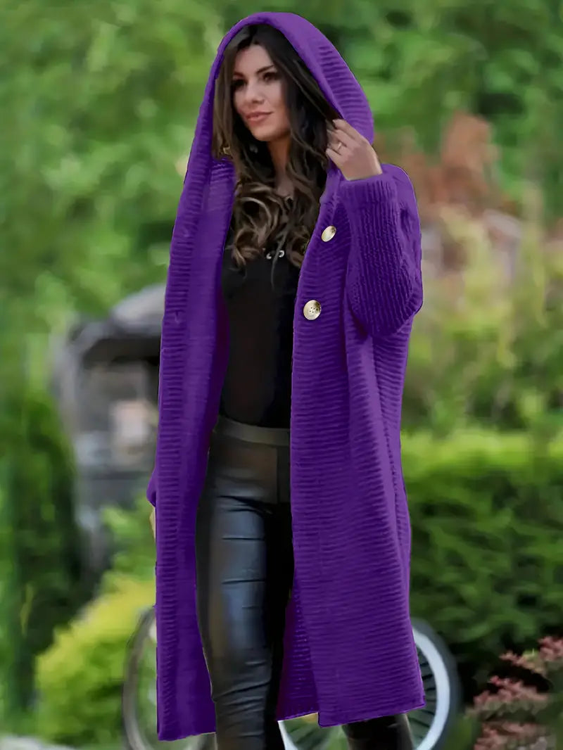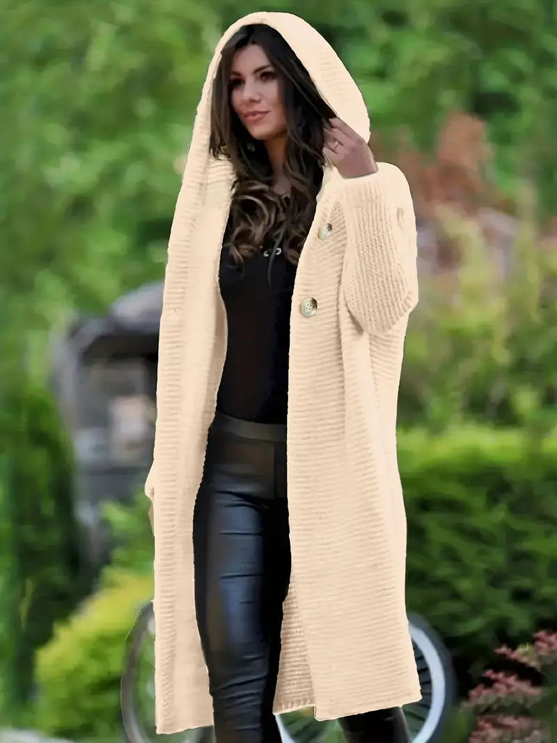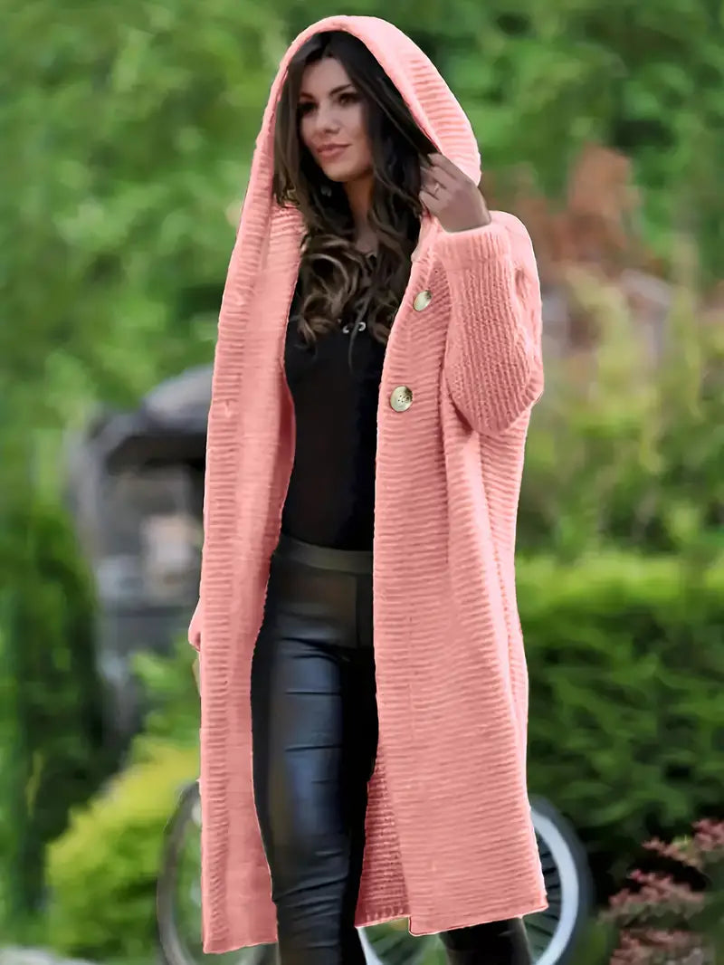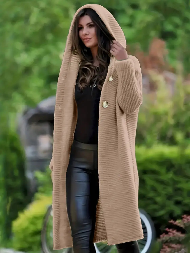 LISBETH - Cárdigan largo de punto con capucha para mujer