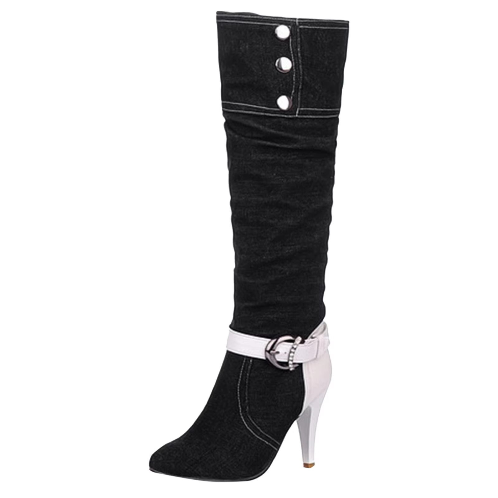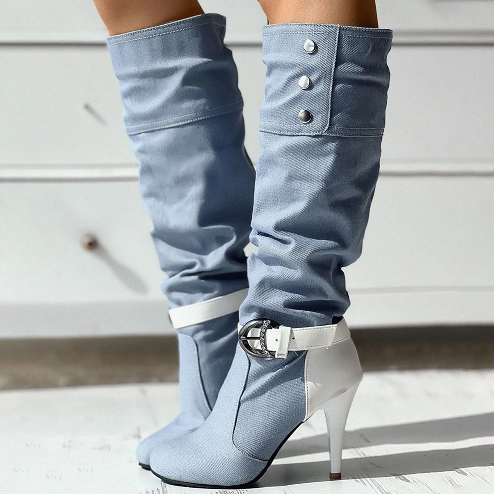 LIV - Botas altas con diseño patchwork y botones decorativos