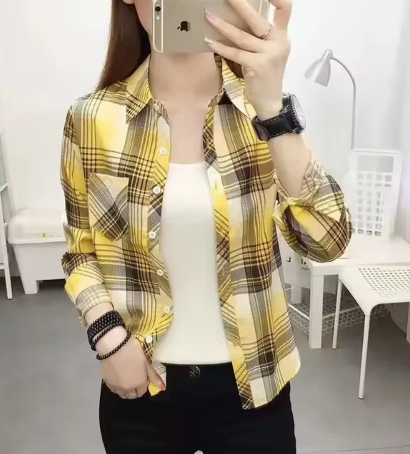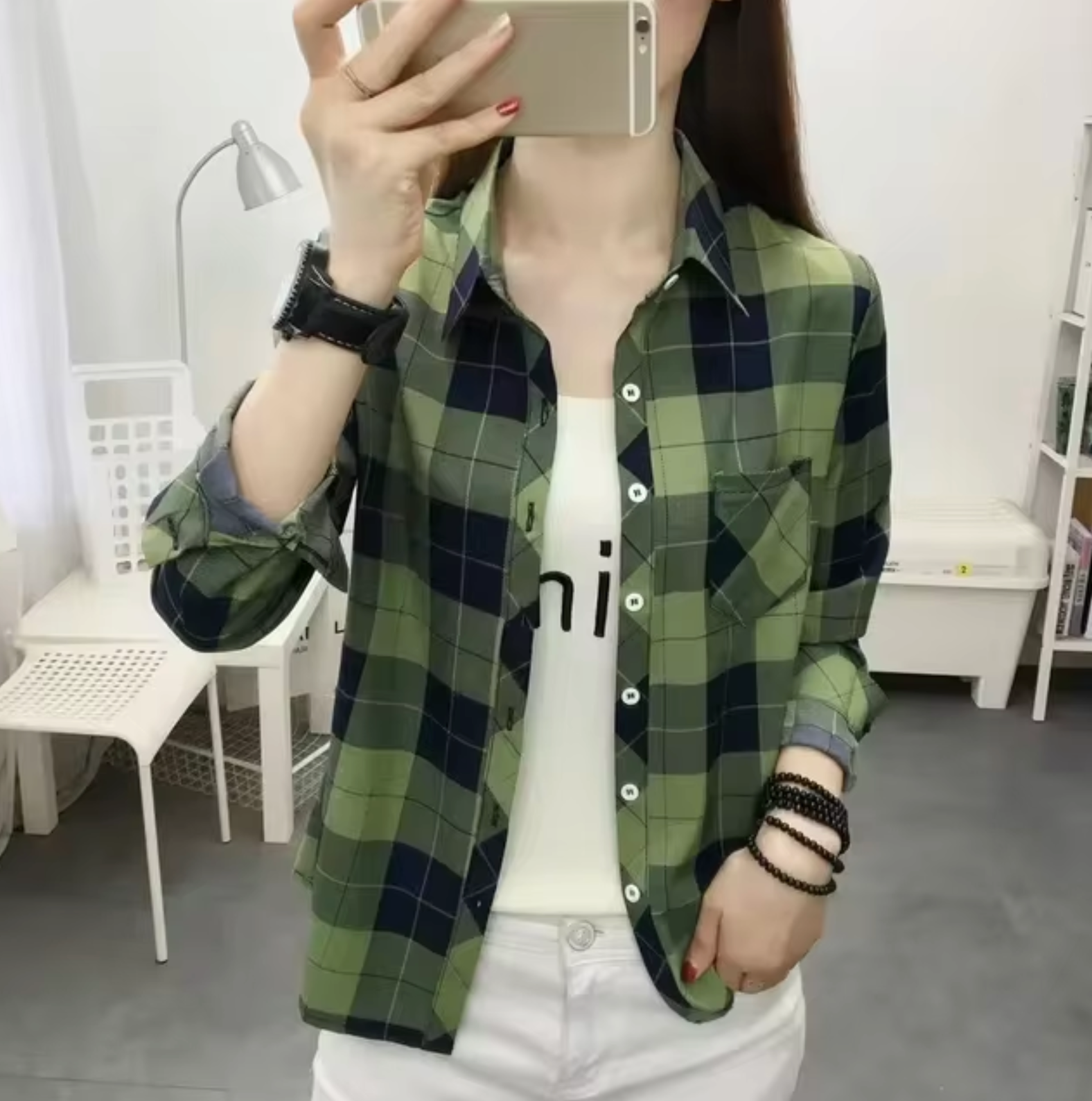 El top LIV es ideal para mujeres que buscan una prenda cómoda y con un toque tradicional. Confeccionado en algodón suave y con un diseño de cuadros atemporal, este top de manga larga es perfecto para crear un look relajado y versátil, ideal para el día a día o para combinar en un estilo casual chic.