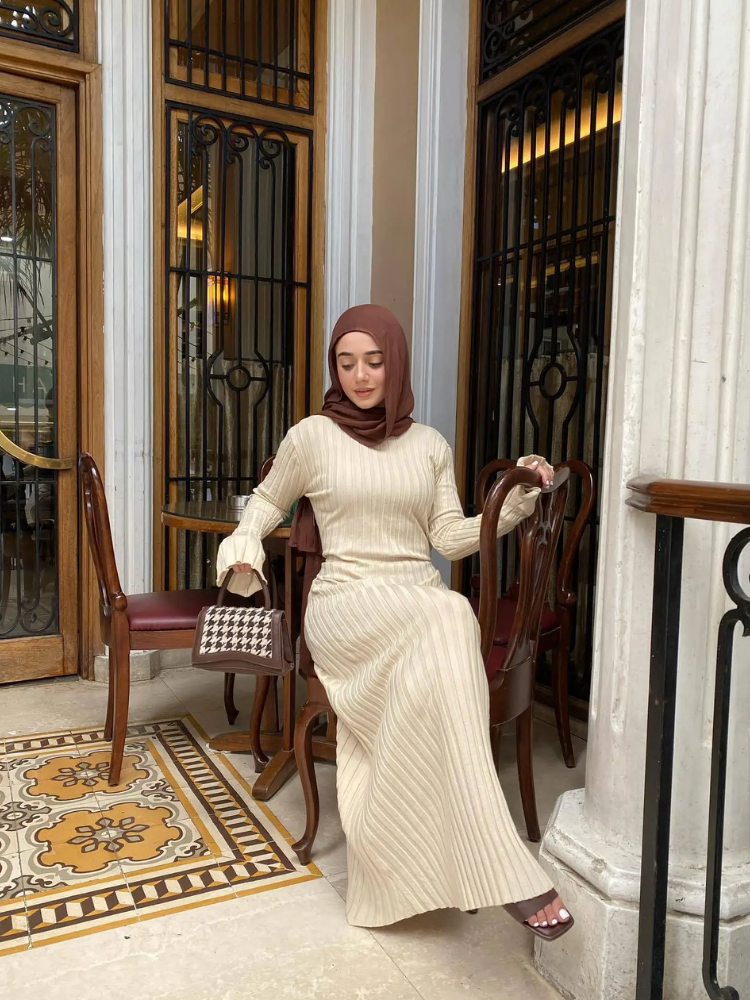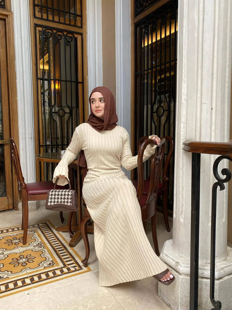 Sofisticación y comodidad en un vestido ajustado de punto ideal para cualquier ocasión
