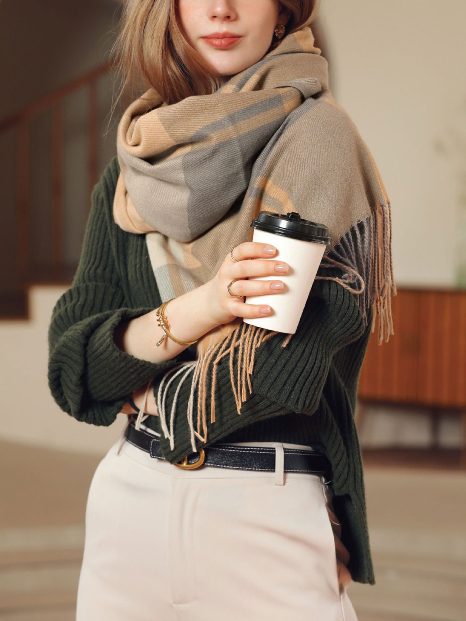 NOELLEA – Bufanda de mujer con diseño de cuadros y tejido suave