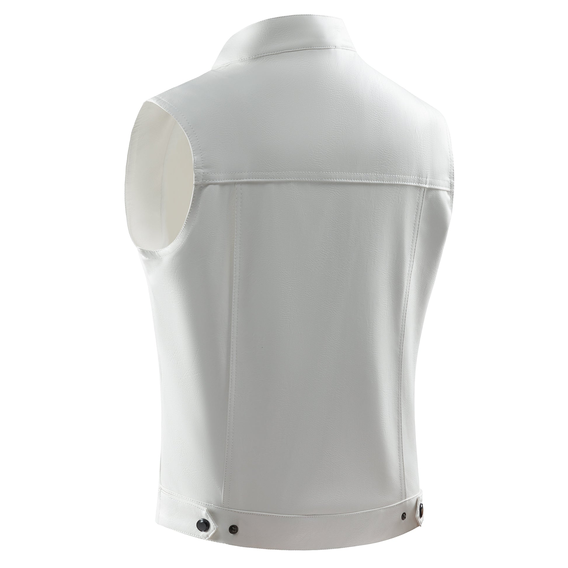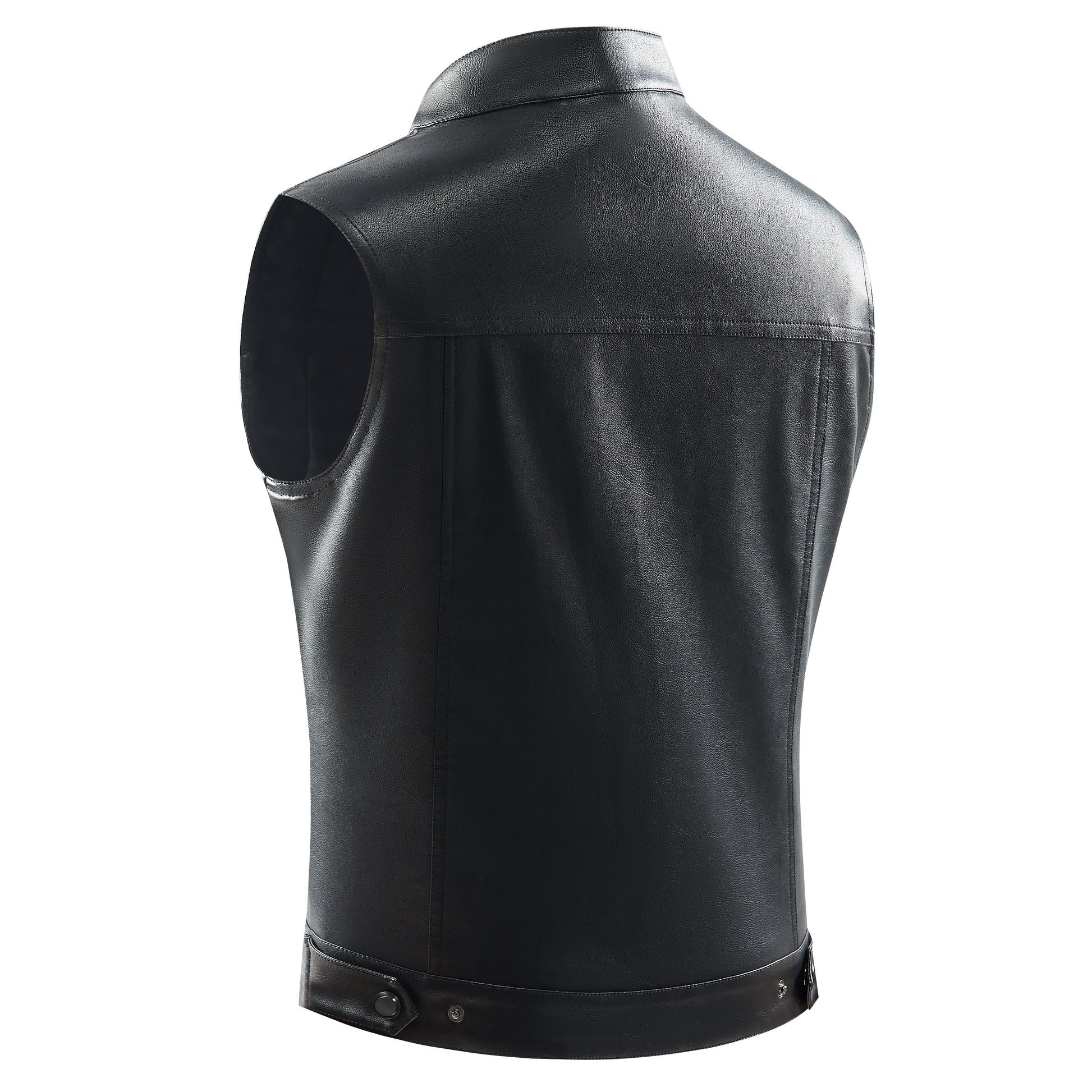 NOLAN - Chaleco retro de cuero con bolsillos frontales