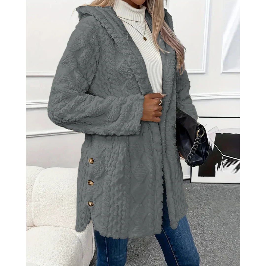 NORA es el cárdigan ideal para mujeres que buscan una prenda cálida y funcional sin sacrificar estilo. Su diseño con capucha y tejido suave lo hace perfecto para relajarte en casa o completar tus looks casuales durante los días más frescos.