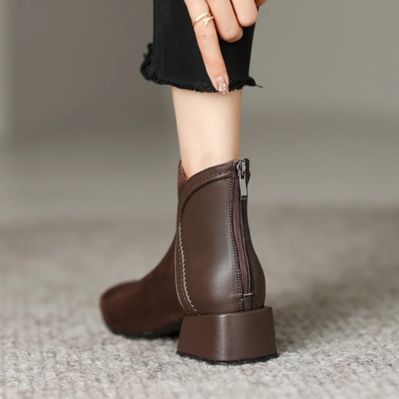 Estilo y sofisticación en unos botines con detalles de costuras contrastantes