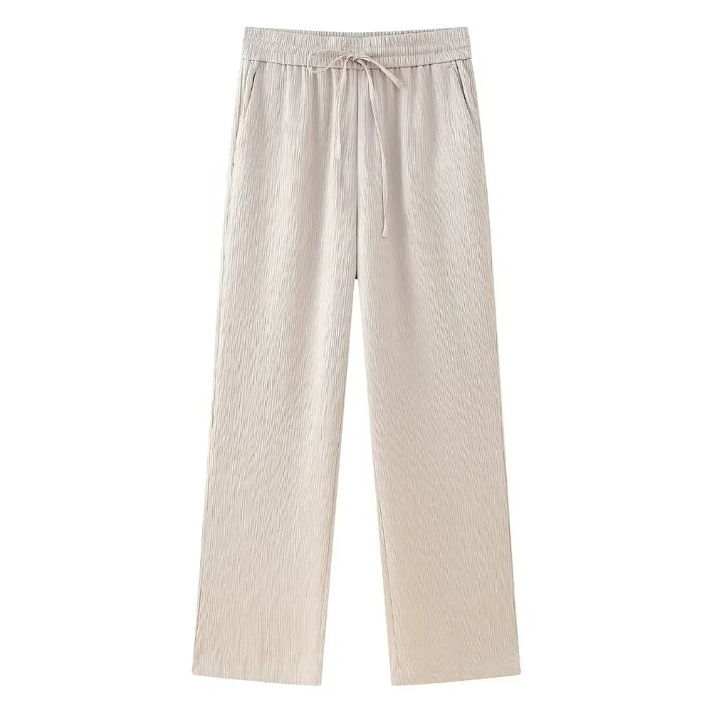 - Pantalón: Corte ancho y cintura ajustada