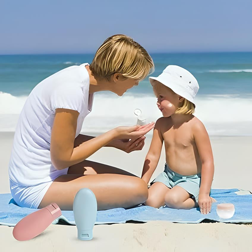 Desde frascos para champú hasta tarros para cremas, todo está pensado para que viajes ligera, sin dejar atrás lo esencial. Su diseño compacto cabe fácilmente en tu neceser o maleta.