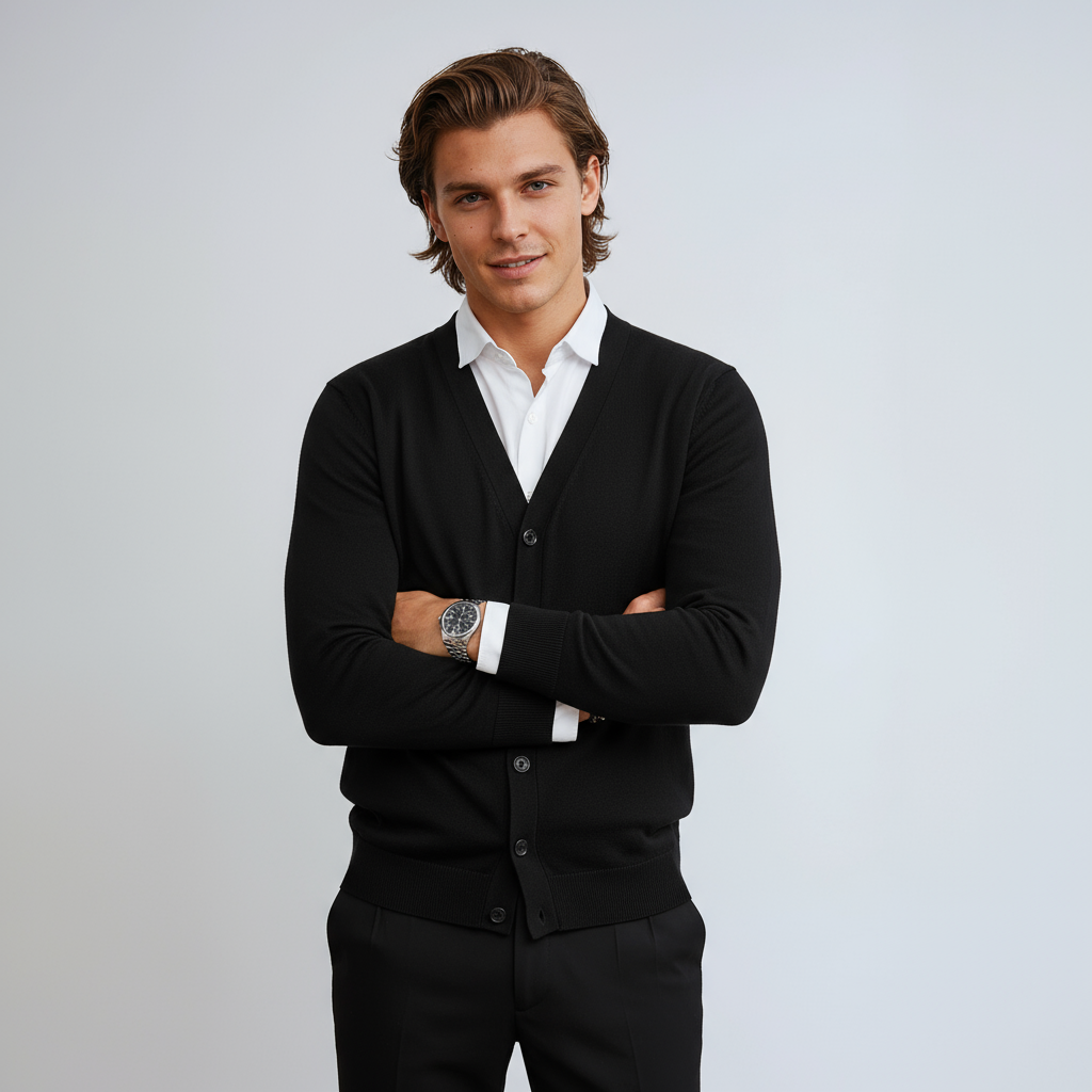 TINVAR – Cárdigan de hombre con cuello en V y cierre de botones