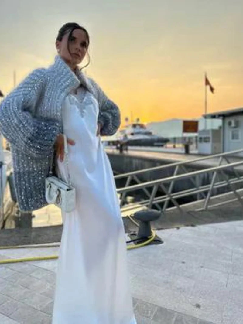 Añade un toque de glamour a tu estilo diario con el cárdigan VERONICA. Este cárdigan con brillos está diseñado para mujeres que buscan una prenda versátil que pueda transformar un aspecto casual en uno chic y elegante. Perfecto para ocasiones especiales o simplemente para darle un toque brillante a tu día a día, el cárdigan VERONICA es una pieza que destaca por su diseño sofisticado y moderno.