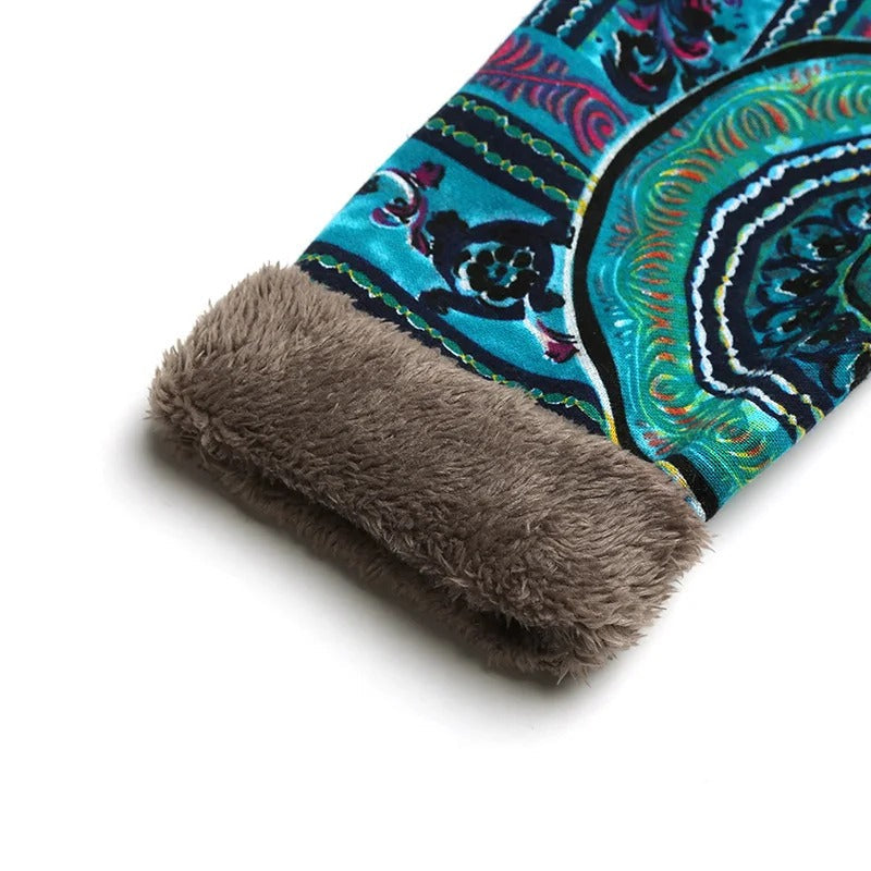 ZARINA - Chaqueta vintage de patchwork con forro de polar para mujer